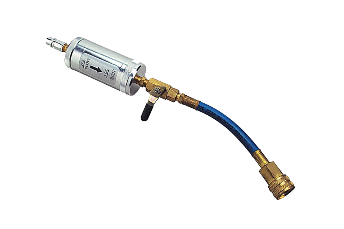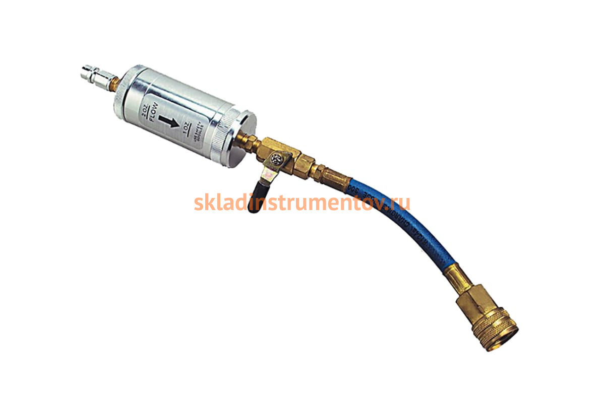 Цилиндр МАСТАК 105-10001 применяется для подачи масла в систему кондиционирования. Оснастка подсоединяется в магистраль между баллоном с фреоном и манометрическим коллектором.
