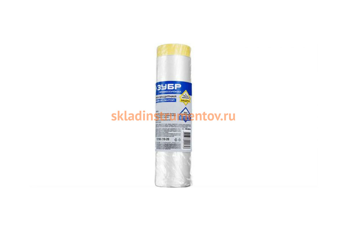 Защитная пленка с клейкой лентой Зубр ПРОФЕССИОНАЛ HDPE 10мкм 0,65х20м 12250-065-20 используется при ремонте, строительстве, покраске поверхностей. Пленка клеится на поверхность, которую необходимо защитить, например, стекло автомобиля во время его покраски. Ширина - 650 мм, длина 20 м.