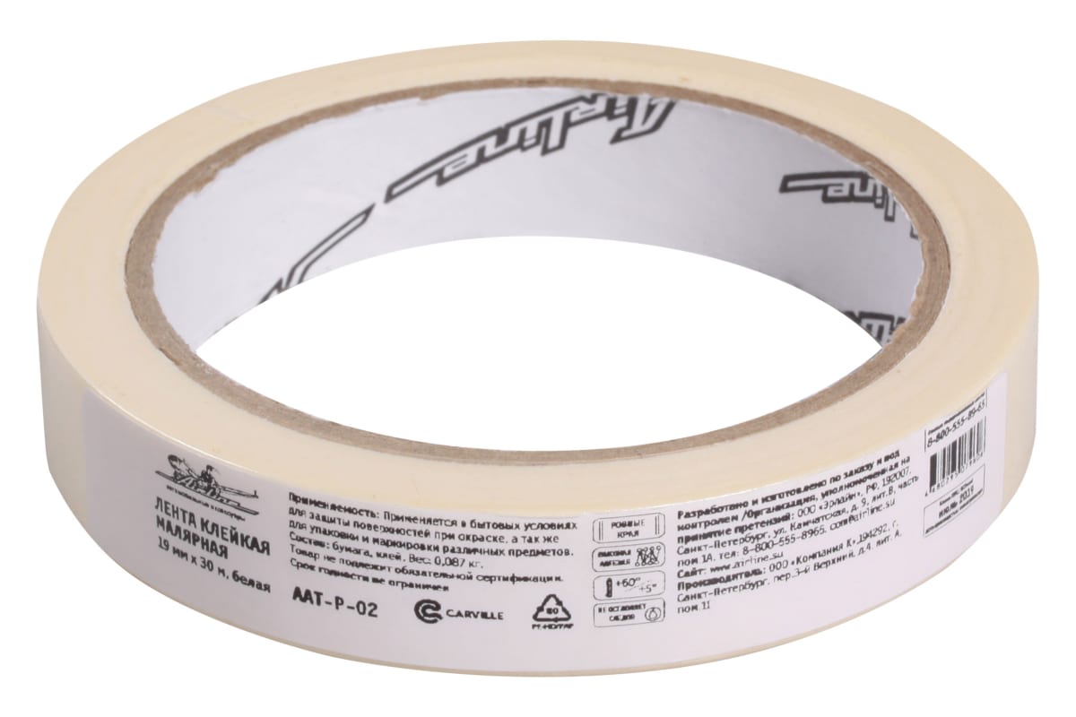 —Клейкая малярная лента Airline 19 мм х 30 м, белая AAT-P-02