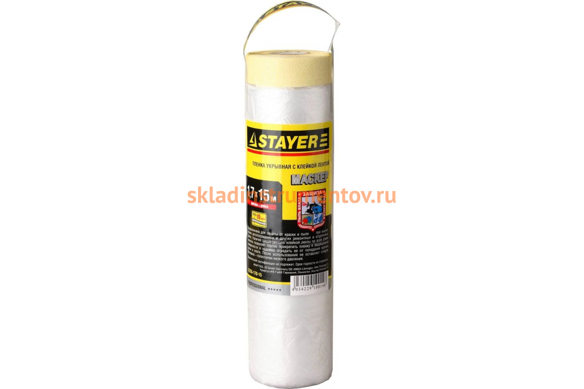 Защитная пленка STAYER Маскер с клейкой лентой ПНД 10 мкм 1700 мм x 15 м 12255-170-15