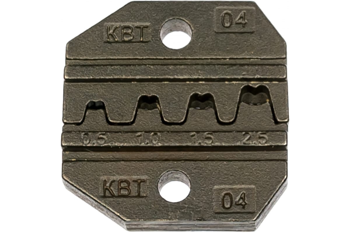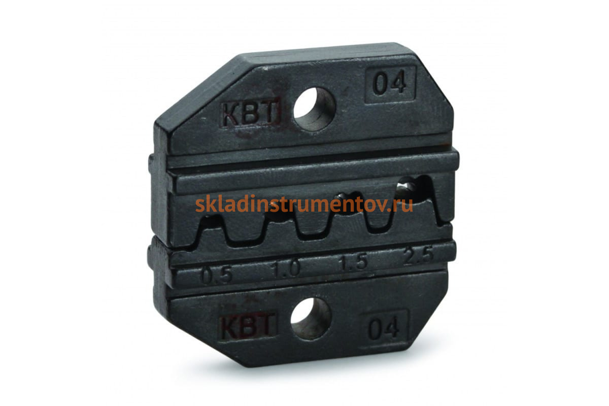 Матрица МПК-04 КВТ 69960 используется совместно с пресс-клещами СТВ-04, СТА-04, СТК-04, набором СТВ. Применяется для опрессовки неизолированных разъемов и наконечников (автоклемм) под двойной обжим. Типы наконечников: РП-М, РП-П. Сечения проводов: 0.25/0.34/0.5/0.75/1.0/1.5/2.5 мм². Тип матрицы — четырехпозиционная. Профиль обжима — лепестковый, двухконтурный.