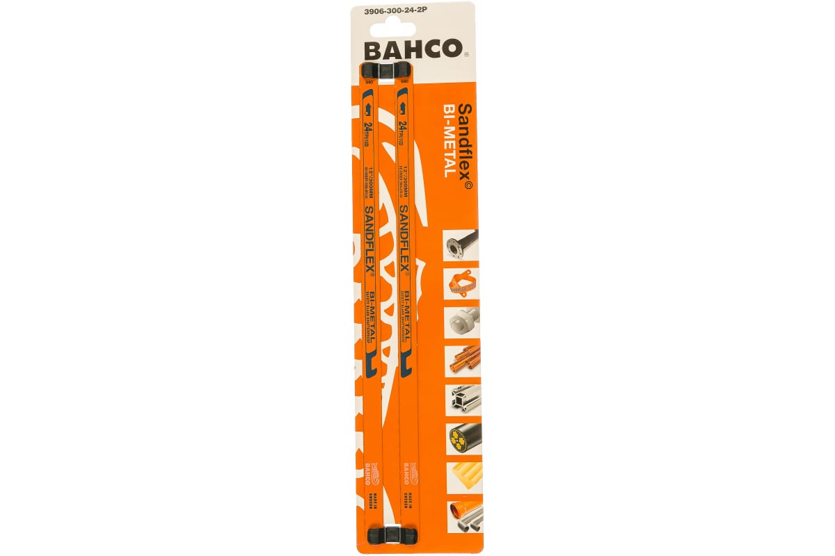 Биметаллическое полотно BAHCO 3906-300-24-2P предназначено для ручных ножовок. Материал полотна - прочная и гибкая пружинная сталь, а зубья выполнены в наваренной полоске из высоколегированной быстрорежущей стали. Данное полотно SANDFLEX обладает высокой режущей способностью. В комплекте два полотна.
