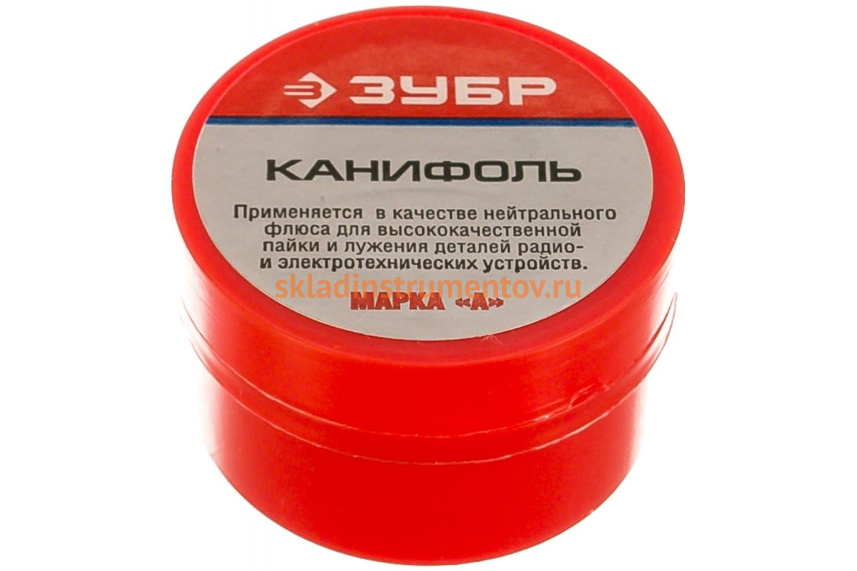 Канифоль сосновая (смола хвойных пород дерева) Зубр 55470-020 применяется для высококачественной пайки и лужения радио- и электротехнических устройств. Является хорошим диэлектриком. Изготовлена в соответствии с ГОСТ 19113-84. Объем — 20 г.