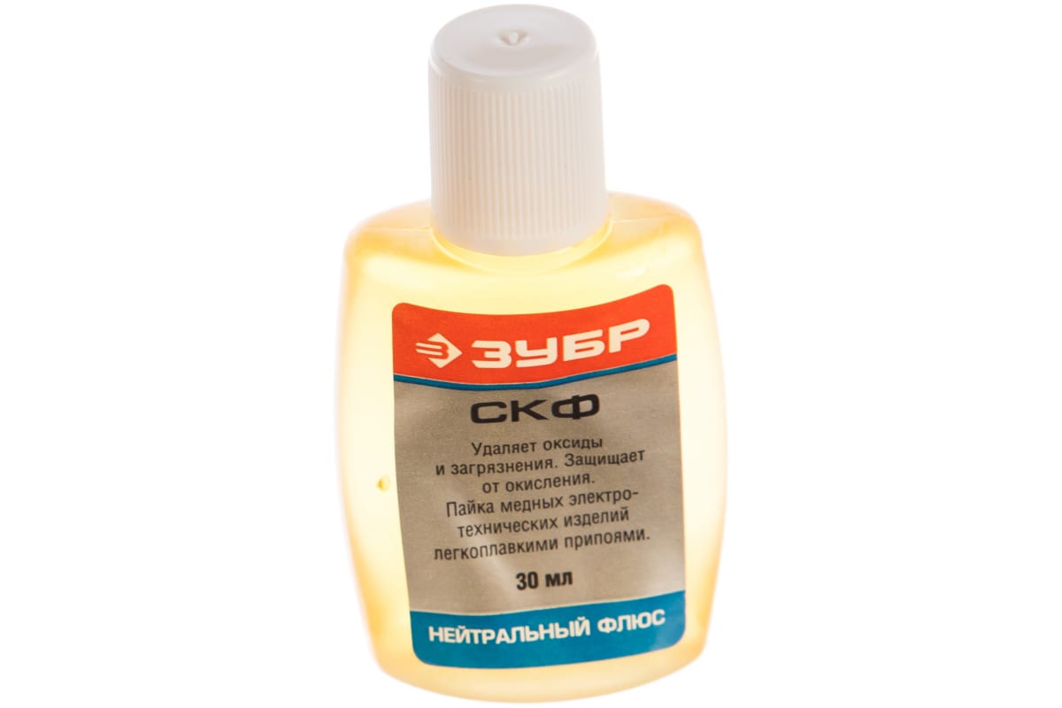 Флюс СКФ Зубр 55478-030 применяется для пайки элементов радиомонтажа и печатных плат легкоплавкими припоями. Необходима отмывка спиртом, бензином или ацетоном.