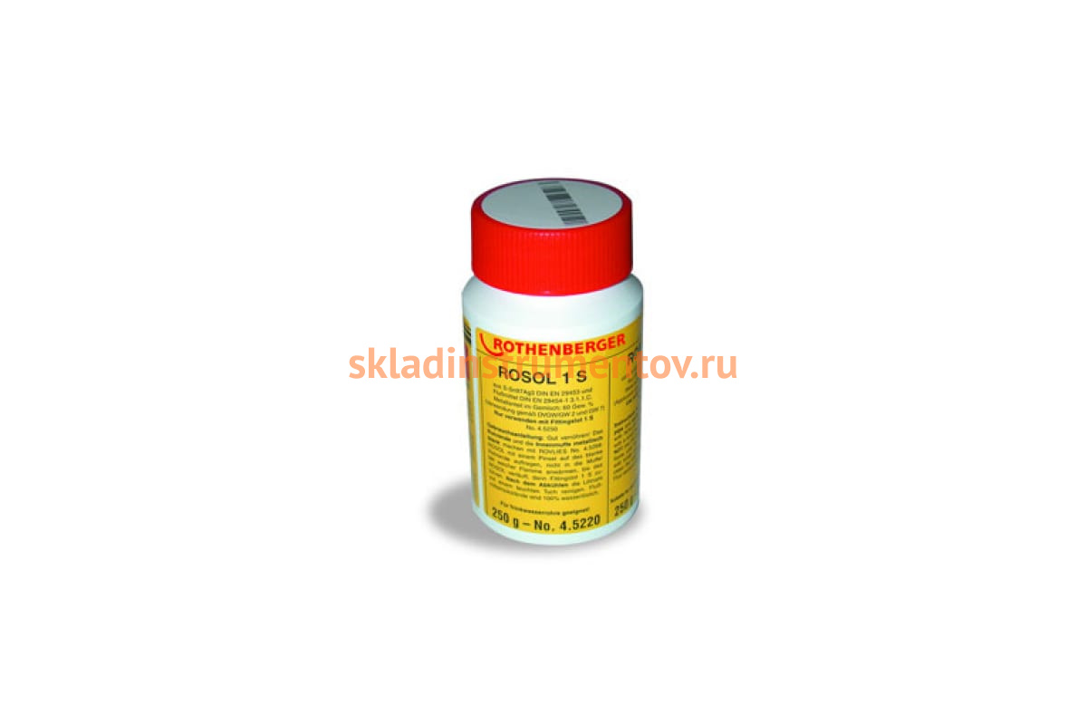 Пастообразный флюс ROSOL 1S Rothenberger 45220 применяется только для мягких припоев марки 1S. Предназначена для скрепления фитингов пайкой. С помощью этой пасты можно быстро и эффективно очистить от оксидов соединяемые поверхности, улучшить растекание расплавленного припоя.