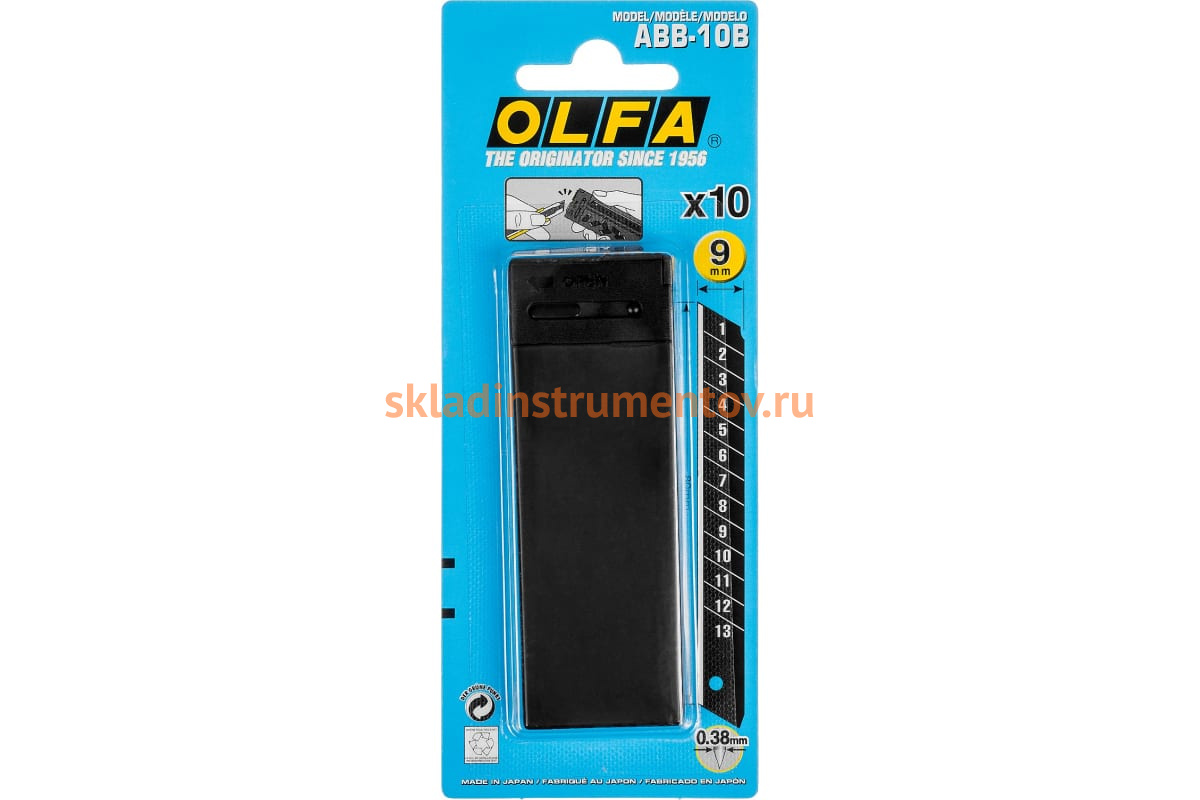 Лезвия сегментированные BLACK MAX (9х80х0.38 мм; 13 сегментов) 10 шт. OLFA OL-ABB-10B изготовлены из высококачественной японской инструментальной стали и профессионально заточены для обеспечения превосходной остроты и непревзойденной долговечности режущей кромки. При изготовлении лезвий серии «EXCEL BLACK» используется технология двойного затачивания, что даёт дополнительные 25% к остроте данного лезвия. Лезвия имеют глубокую и гладкую сегментную линию для легкого отламывания. Упакованы в удобный кейс для переноски и хранения.