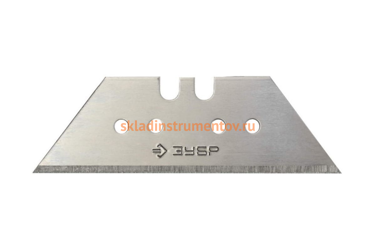 Лезвие Зубр 09712-24-5 является сменным элементом для строительных ножей и используется при резке ковровых покрытий, линолеума, гипсокартона, изделий из дерева и пластика. Данное лезвие изготовлено из инструментальной стали У8А.