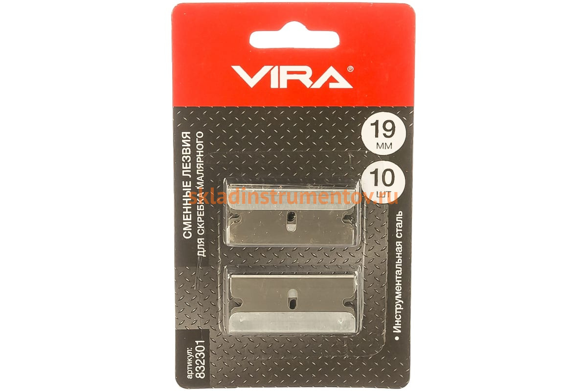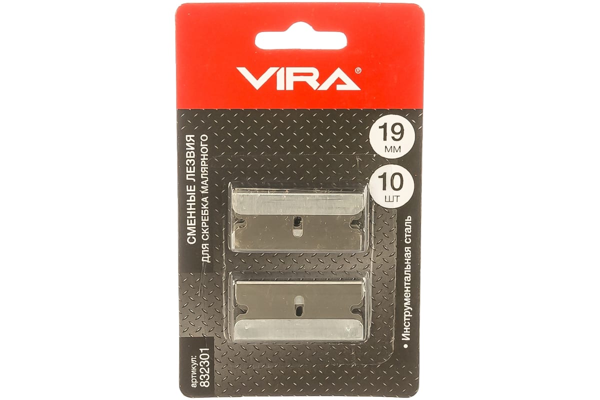 Лезвия для скребка малярного 19 мм, 10 шт. VIRA 832301 крепятся на малярный скребок для удаления загрязнений со стекла, керамики, кафеля.