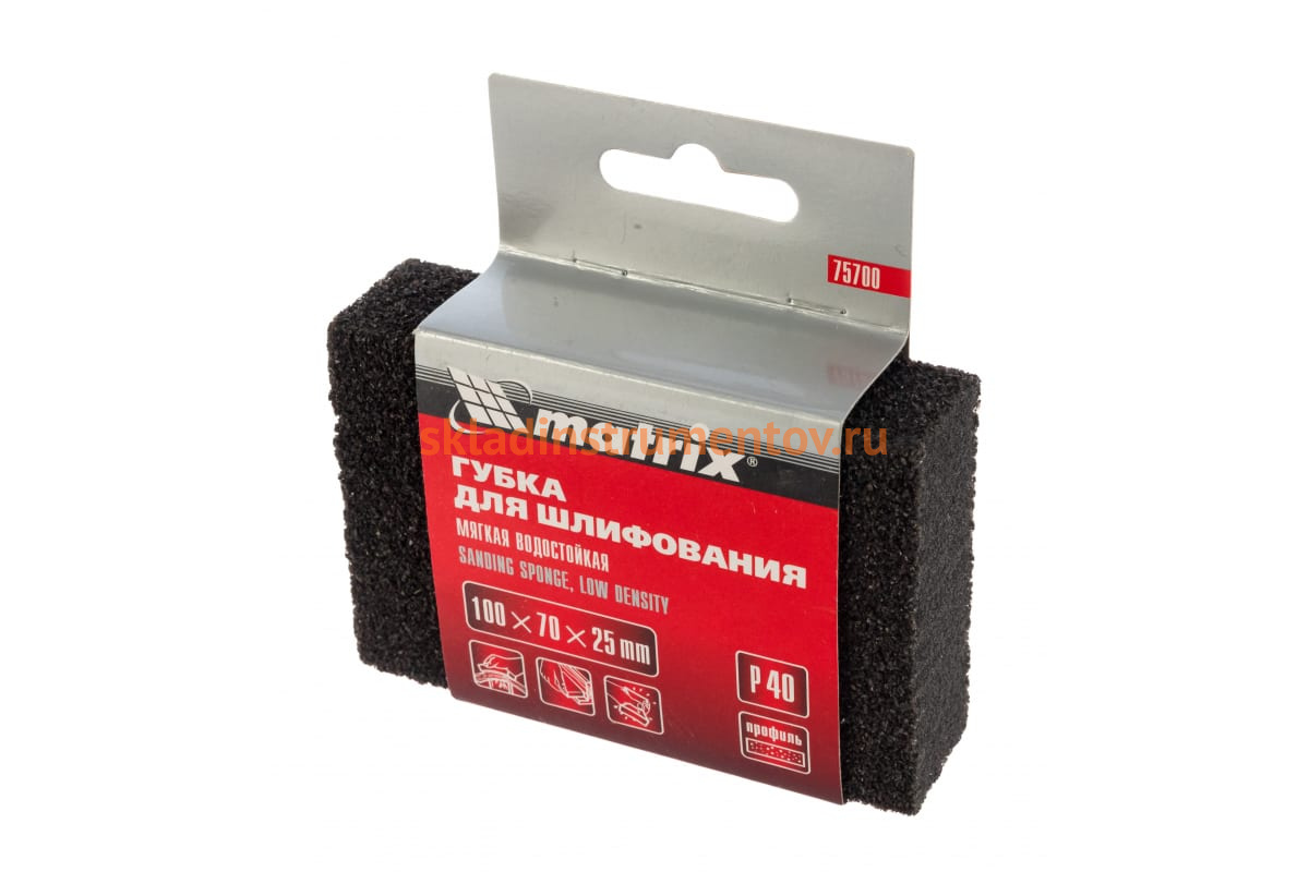 —Губка для шлифования (100х70х25 мм; P40; мягкая) MATRIX 75700