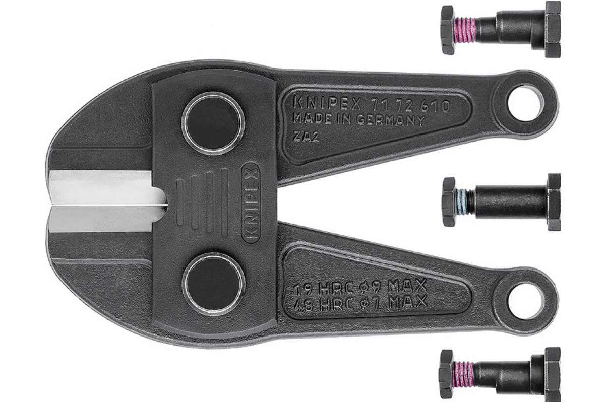 Запасная ножевая головка Knipex KN-7179610 предназначена для болторезов KN-7172610 длиной - 610 мм. Комплектуется болтами. Материал: хромованадиевая высококачественная кованная сталь, закаленная в масле. Вес - 850 г.