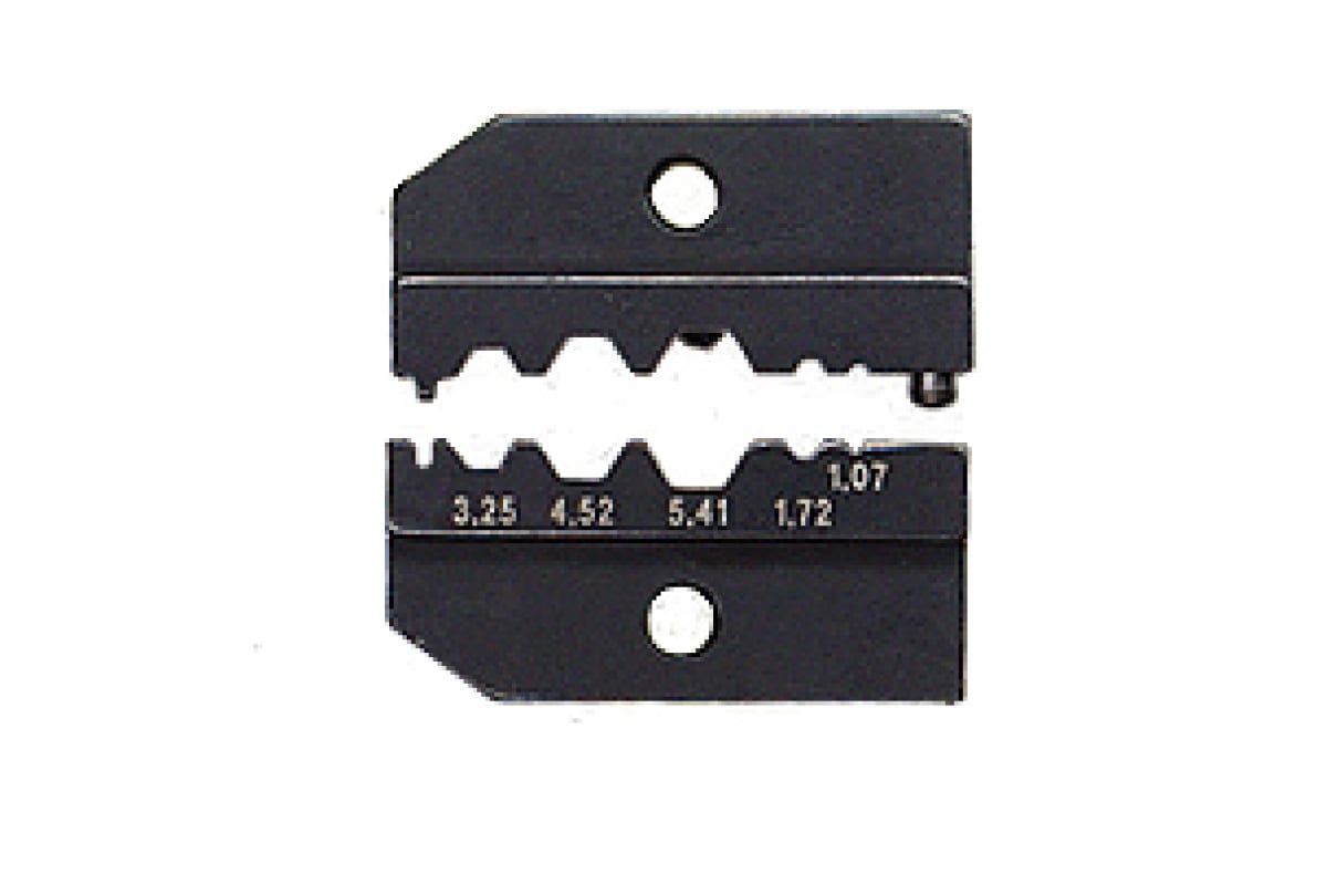 Насадки KNIPEX KN-974950 используются с зажимными клещами для опрессовки коаксиального штекера и контактов автомобильного телефона. Насадки легко устанавливаются и настраиваются на используемую гильзу, что делает обжим надежным и безопасным, облегчая труд профессионала. Высококачественная закаленная сталь продлевает срок их службы.