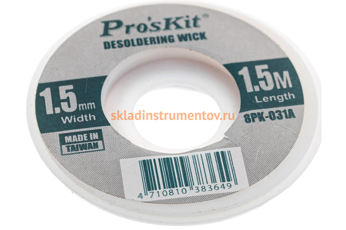 Лента-поглотитель олова ProsKit 8PK-031A 00153904 используется для удаления лишнего припоя. Изготовлена из бескислородной меди, покрыта специальным флюсом, который не требует очистки.