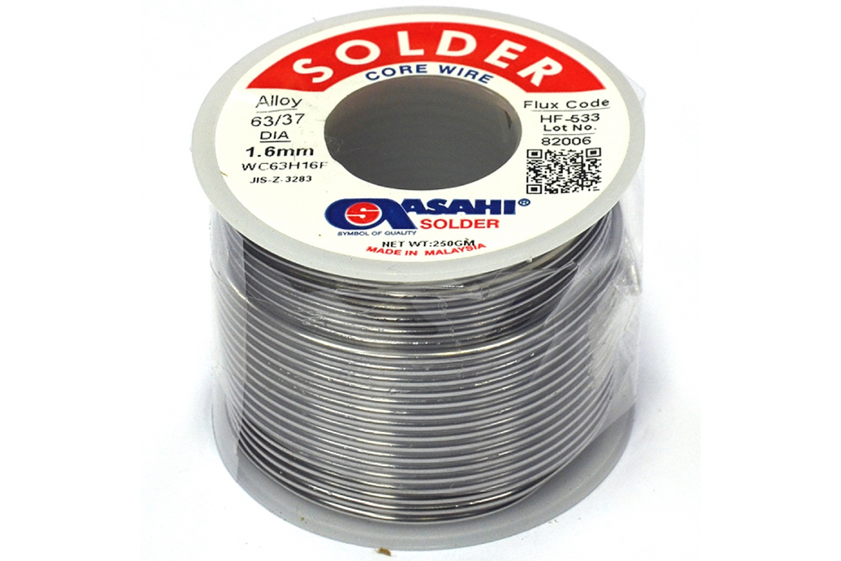 Припой (1.6 мм, 0.25 кг, Sn63/Pb37, HF533, флюс безотм. RMA) ASAHI 00-00001438 широко применяются для пайки и лужения в различных областях (радио- и электронная аппаратура, печатные схемы, приборы, обмотки электродвигателей, провода и кабели, радиаторы и пр.) Низкая температура плавления припоя позволяет использовать его в случаях, где недопустим перегрев паяемых деталей.