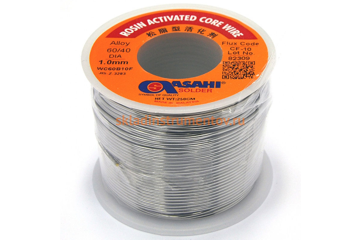 В канале припоя используется флюс CF-10 (тип ROH1) на основе модифицированной канифоли, что обеспечивает отличное смачивание паяемых поверхностей непосредственно в момент пайки. После пайки припоем с флюсом CF-10 не требуется обязательной отмывки, т.к. остатки флюса практически прозрачны, минимальны и сухи. При необходимости можно использовать любую отмывочную жидкость на основе спирта. Все трубчатые припои ASAHI производятся при строгом контроле качества и соответствуют или превосходят требования промышленных стандартов JIS-Z-3283, ANSI/J-STD 004 и DIN-8511.