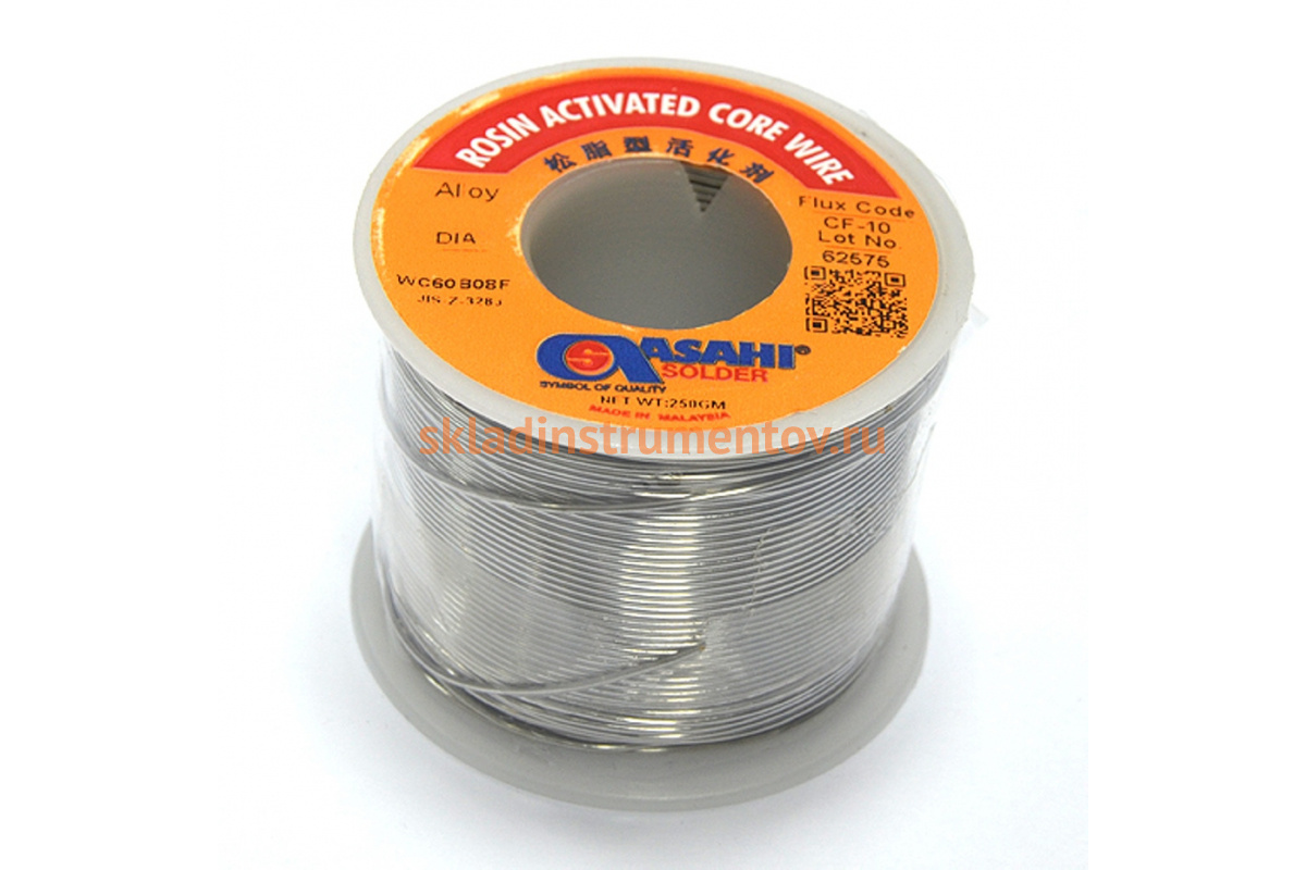 Припой (2 мм, 1 кг, Sn60/Pb40, СF10 флюс RA) ASAHI 00-00000078 широко применяется для пайки и лужения в различных областях (радио- и электронная аппаратура, печатные схемы, приборы, обмотки электродвигателей, провода и кабели, радиаторы и пр.) Низкая температура плавления припоя позволяет использовать его в случаях, где недопустим перегрев паяемых деталей.