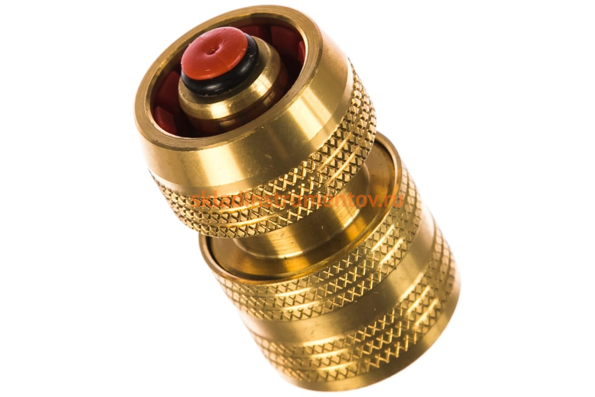 Соединитель "шланг-насадка" 4246-55005B RACO с автостопом используется с системами полива для соединения поливочного шланга с различными насадками. Соединитель выполнен из латуни, которая прошла процесс полировки и не подвергается химическим и механическим воздействиям. С помощью приспособления осуществляется легкая и быстрая смена насадок, когда это необходимо. Функция "автостоп" автоматически перекрывает подачу воды при снятии насадки, что обеспечивает удобство и обеспечивает экономию воды.