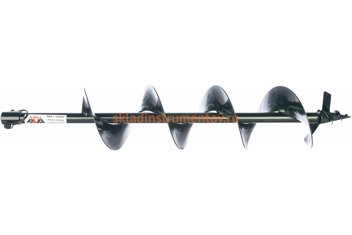 Шнек ADA Drill 150/800 предназначен для использования в бензобурах ADA. Он представляет собой винтообразный бур, который широко применяют для бурения скважин бытового назначения. Например, с его помощью можно производить скважины для установки столбов. Благодаря винтовой форме шнек быстро проникает сквозь грунт, который в свою очередь словно по транспортной ленте выбрасывается наверх. При необходимости шнек легко заменить.