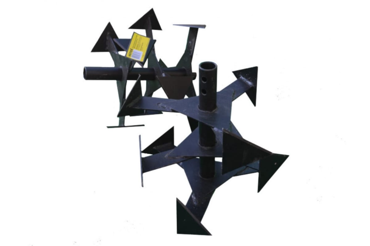 Благодаря треугольной форме концов ножей обеспечивается достаточное крошение и перемешивание почвы. Сплошная конфигурация обеспечивает прочность фрезы при работе на твердом грунте, целине. Подходит для работы с участками земли с крупными комьями.