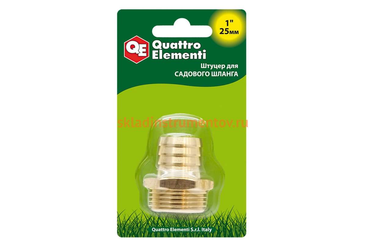 Штуцер для шланга 1" х 25 мм QUATTRO ELEMENTI 771-855 предназначен для подключения садовых шлангов к системам водоснабжения.