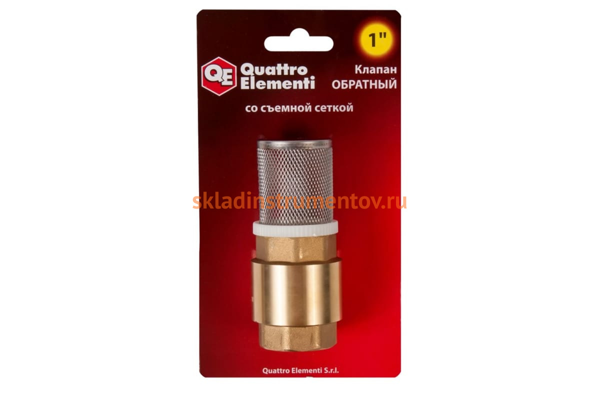 Обратный клапан QUATTRO ELEMENTI 771-817 используют с насосами и насосными станциями. Он предотвращает незапланированный слив воды из системы водоснабжения, например, при остановке работы насоса. Клапан имеет внутреннюю резьбу 1" и съемную сетку. Клапан выполнен из латуни, имеет длительный срок эксплуатации.