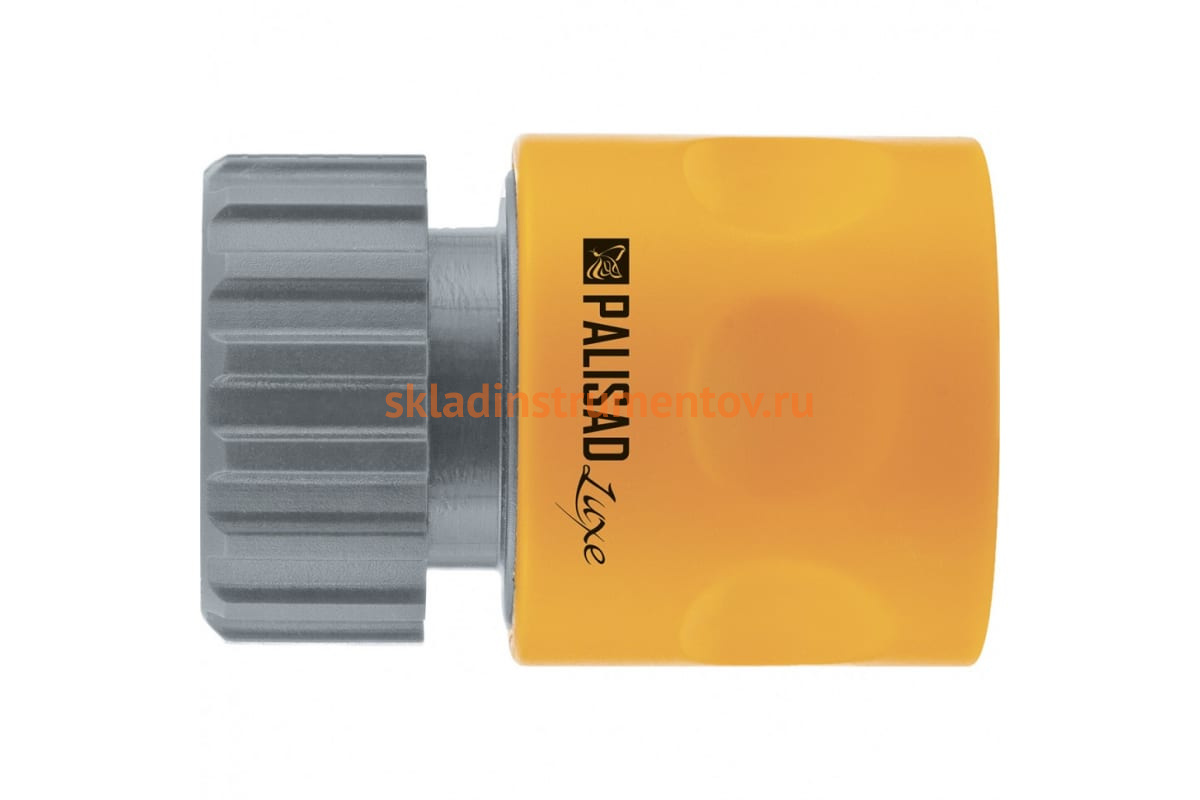 Соединитель пластмассовый быстросъемный, внутренняя резьба 3/4", с аквастоп PALISAD 66262 используется для соединения поливочного шланга с водопроводным краном с помощью внутренней резьбы G3/4". Функция аквастопа останавливает подачу воды от водопровода в шланг. Это удобно при смене насадок.