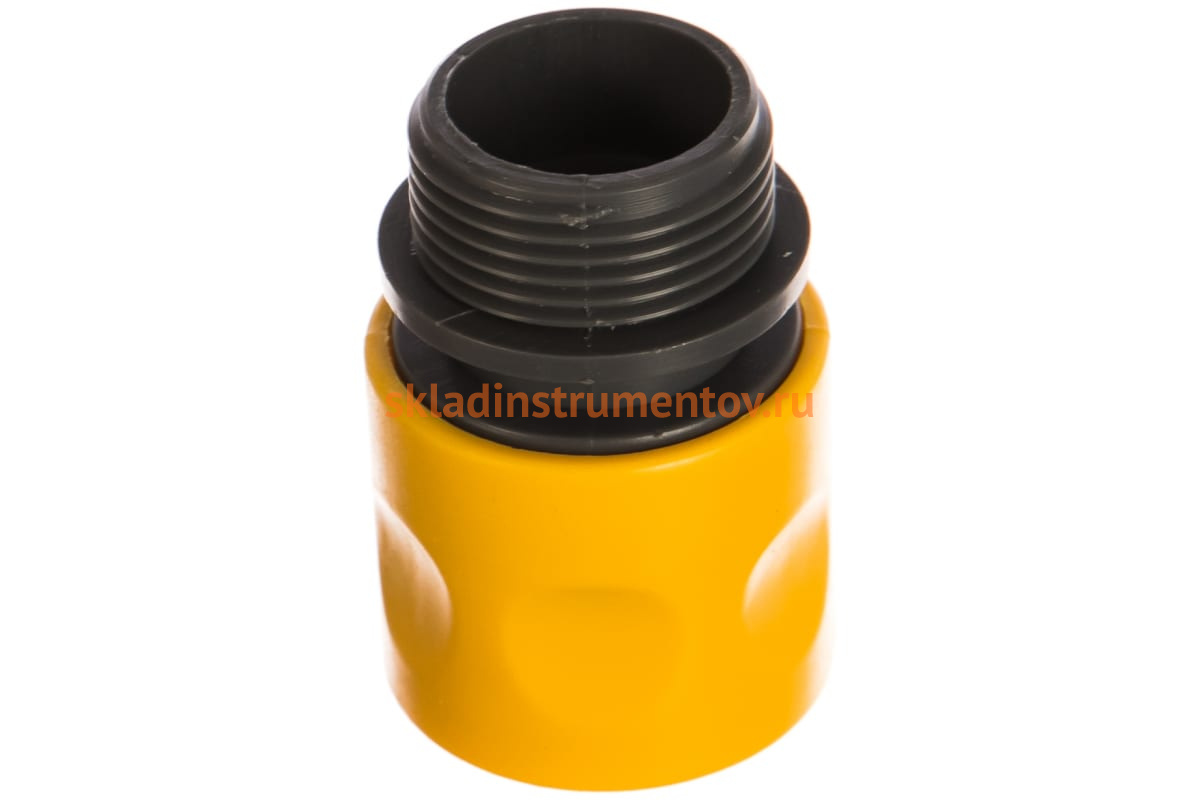 Соединитель пластмассовый быстросъемный, внешняя резьба 3/4" PALISAD 66263 используется для соединения поливочного шланга с водопроводным краном с помощью наружной резьбы G3/4".