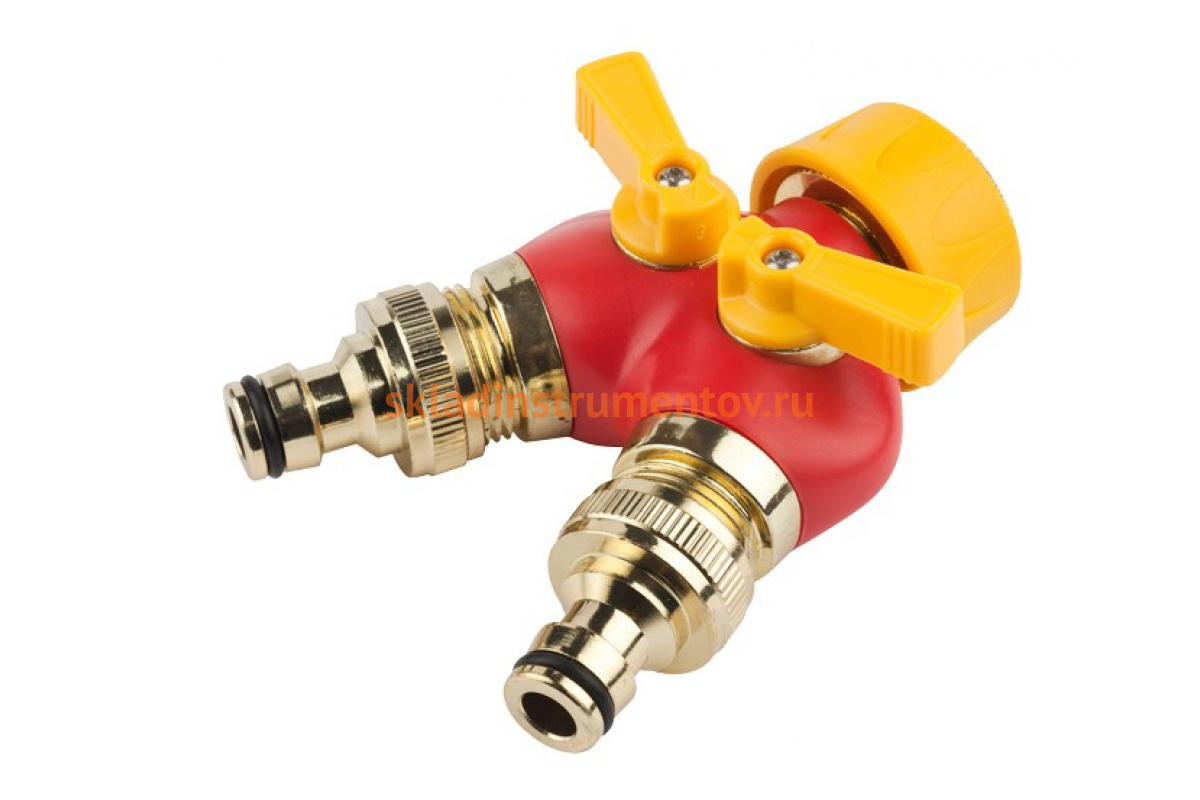 Распределитель (двухканальный; металлический; 3/4"-1") "EXPERT" Grinda 426112 используется для единовременного подключения двух водозаборных линий к водопроводной трубе или крану внешней резьбой 3/4 или 1 дюйма.