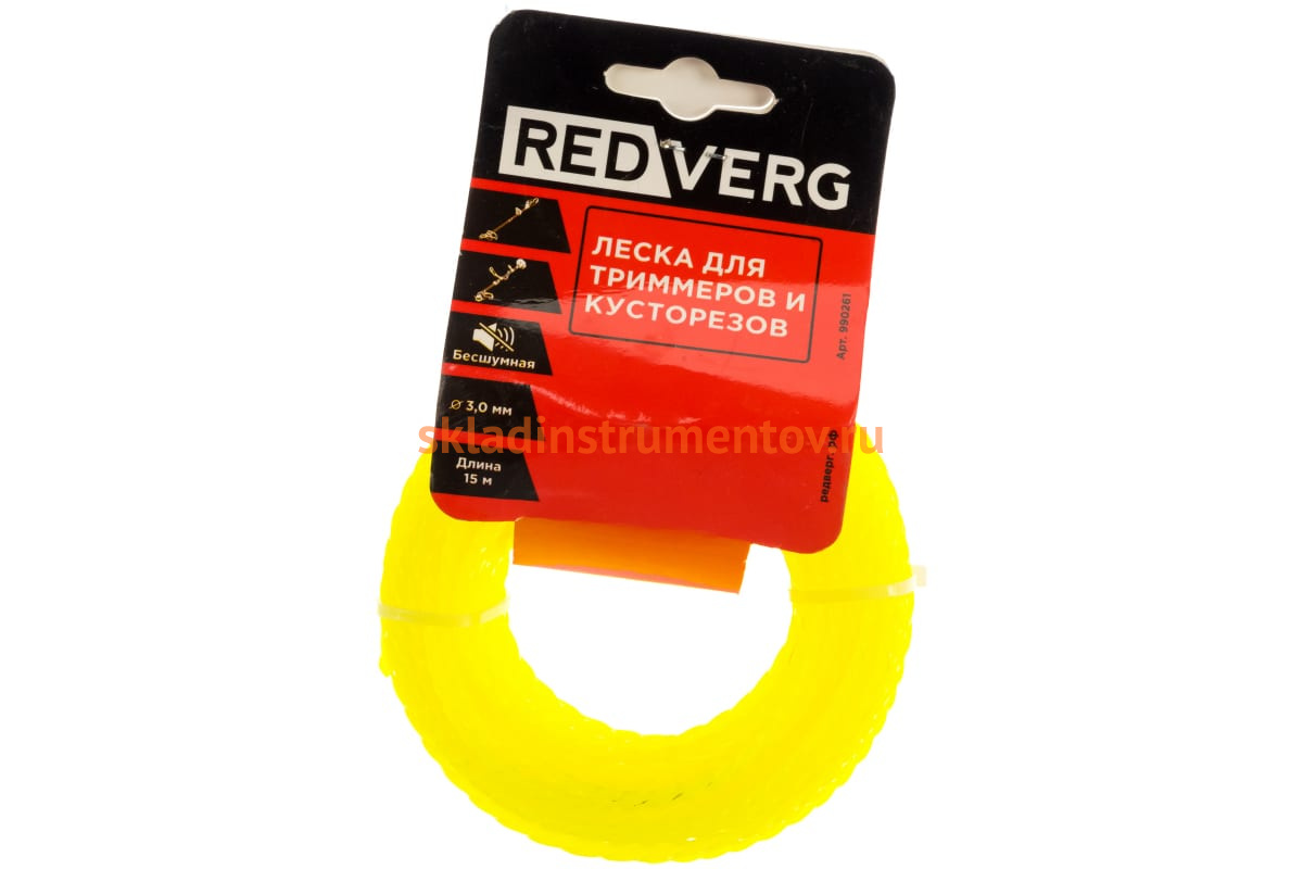 Леска для триммера 3,0 мм, 15 м, витая, бесшумная REDVERG 6622435 используется для ухода за газоном на садовых и придомовых участках.