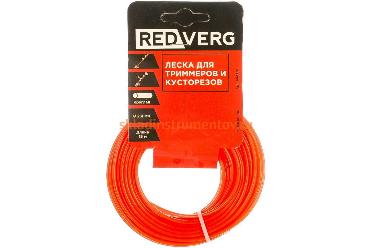 Леска для триммера 2,4 мм, 15 м, круглая REDVERG 5014470 используется для ухода за газоном на садовых и придомовых участках.