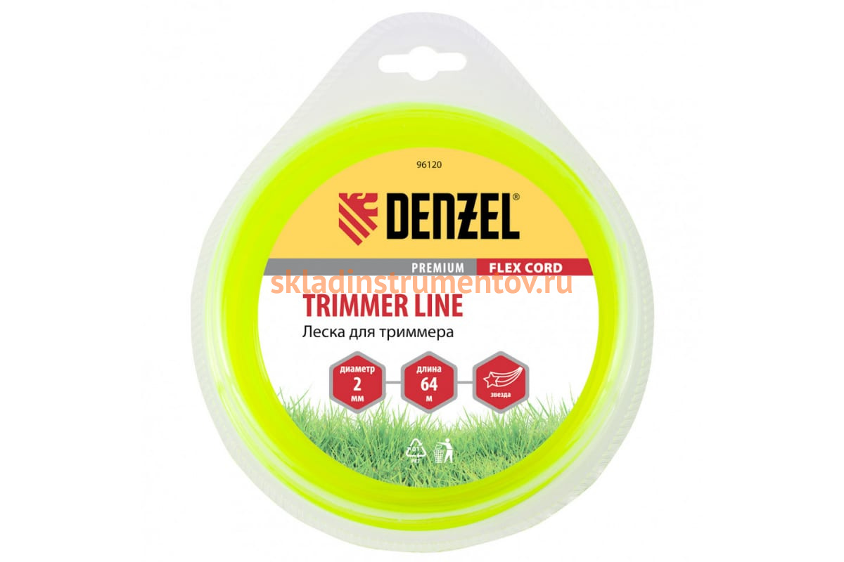 Триммерная леска Denzel FLEX CORD 96120 2 мм х 64 м используется в качестве режущего элемента для бензиновых и электрических кос мощностью до 1000 Вт. Имеет пятиугольную форму и толщину 2 мм, поэтому использовать триммер с такой леской можно на больших территориях для чистовой стрижки газона, подрезания сухой травы, сорняков и небольших кустарников.