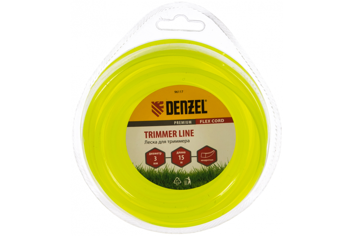 —Леска для триммера квадрат 3 мм х 15 м блистер FLEX CORD DENZEL 96117