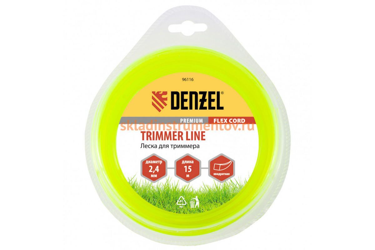 —Леска для триммера квадрат 2,4 мм х 15 м блистер FLEX CORD DENZEL 96116