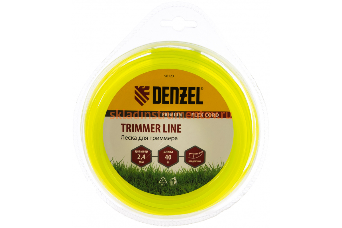 Леска Denzel FLEX CORD квадрат 2,4 мм х 40 м 96123 предназначена для бензиновых и электрических триммеров средней и высокой мощности. Квадратный тип сечения и диаметр 2,4 мм позволяют скашивать траву разной степени жесткости, молодой кустарник, высокий бурьян и сорняки.