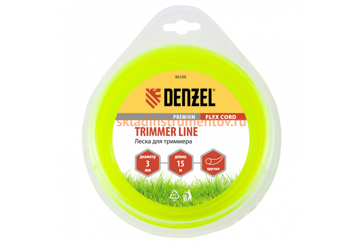 —Леска для триммера круглая 3 мм х 15 м блистер FLEX CORD DENZEL 96109