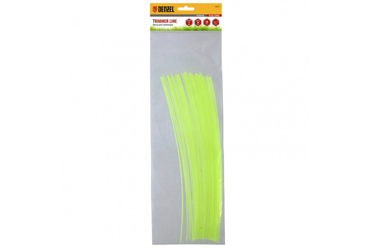 Леска для триммера круглая нарезанная 2 мм х 30 см 50 шт FLEX CORD DENZEL 96100
