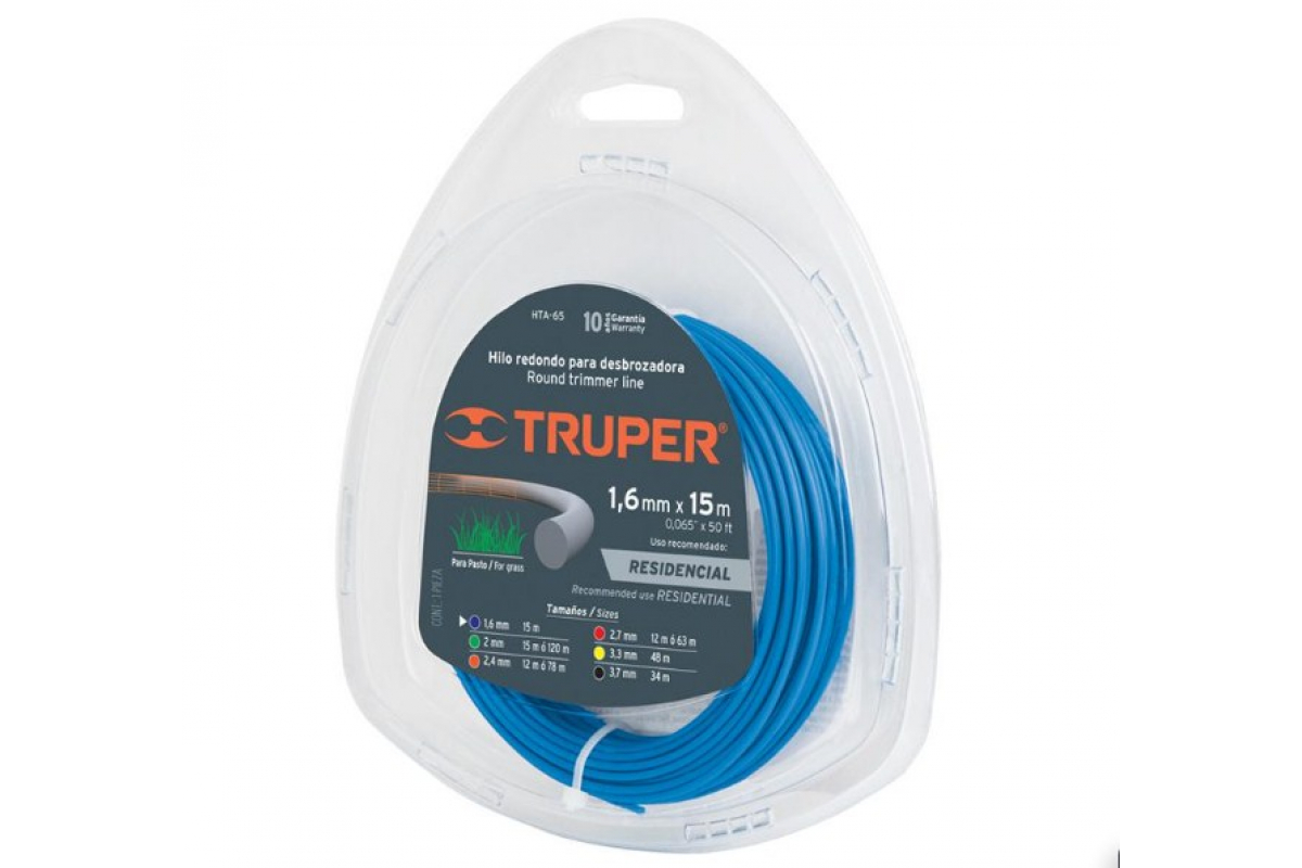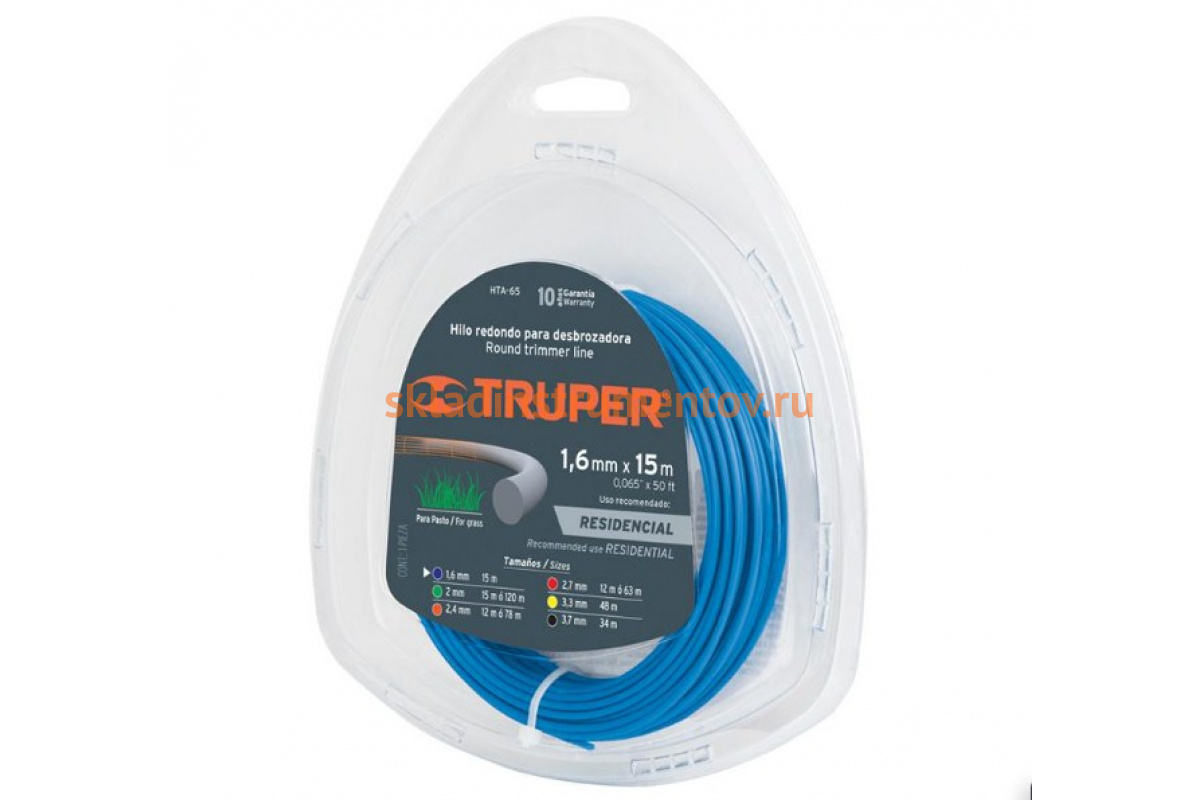 —Леска (1,6 мм х 15 м) для триммеров HTA-65 Truper 17605