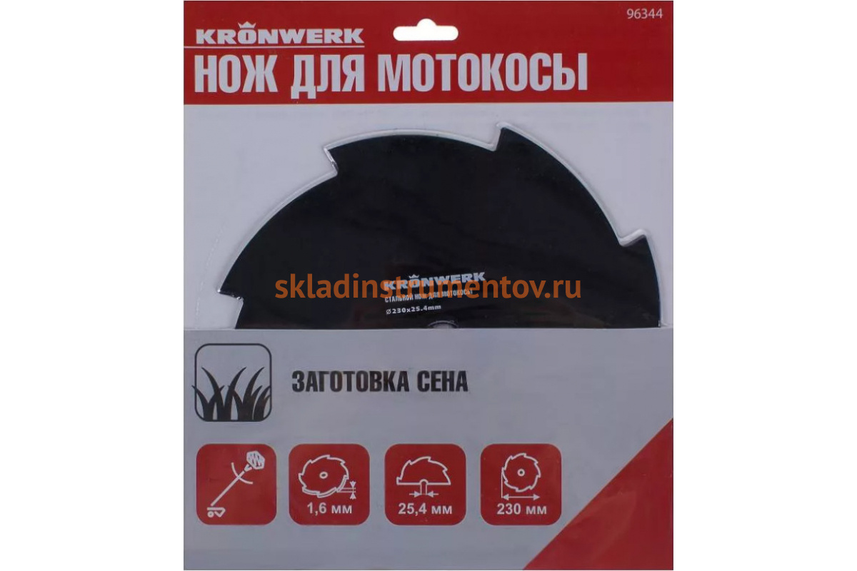 —Нож стальной (230х25.4 мм; 8 лезвий) для мотокосы KRONWERK 96344