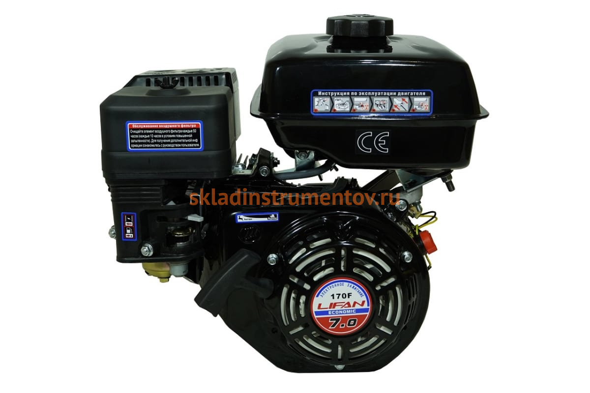 Двигатель LIFAN 170F ECO D19, увеличенный бак 6 л 00-00153883 разработан специально для использования совместно с мотоблоками, культиваторами, мотопомпами. Тип двигателя: бензиновый, 4-хтактный, расположение вала горизонтальное.
