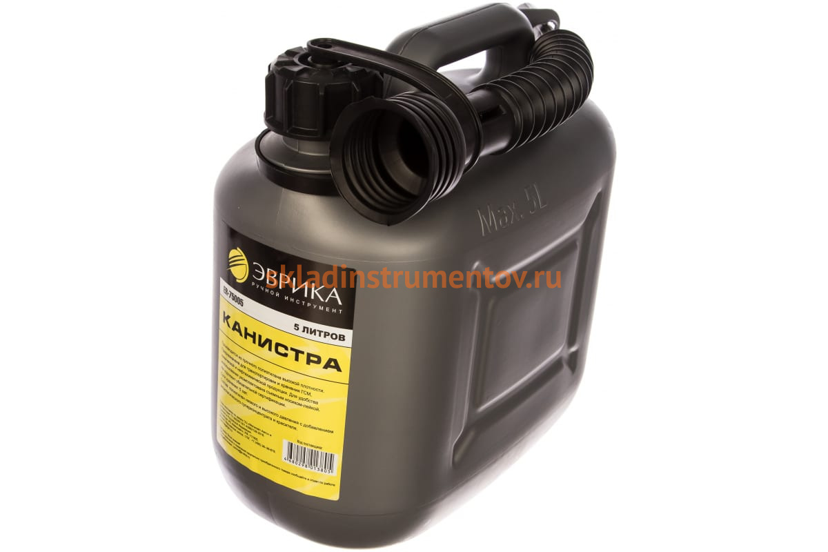 Канистра полиэтиленовая ЭВРИКА ER-75005 - прочная емкость для хранения ГСМ. Канистра оснащена носиком-лейкой, который позволяет легко слить жидкость. Производится из прочного полиэтилена высокой плотности.