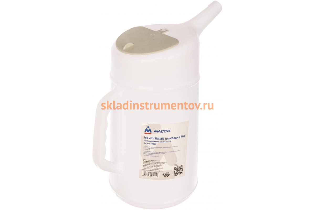 Мерная емкость с крышкой, 4 л МАСТАК 135-10004 обладает удобной конструкцией и гарантирует достаточную герметичность при работе. Изделие выполнено из полиэтилена и комплектуется гибким носиком для удобства наливания жидкостей. Имеется мерная шкала и эргономичная рукоятка.