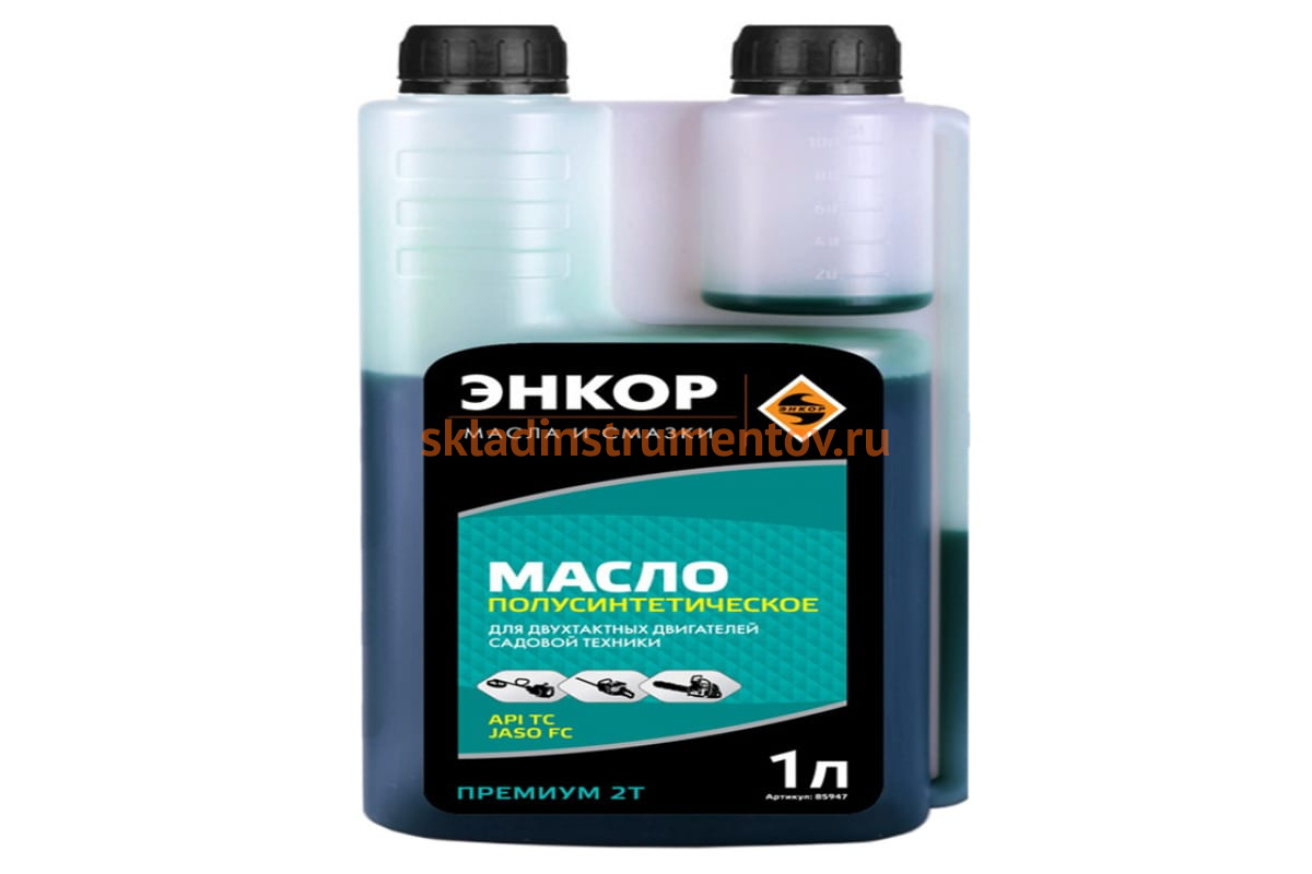 Масло полусинтетическое Энкор 85947 подходит для 2-х тактных бензиновых двигателей с воздушным или водным охлаждением. Масло сохраняет высокие показатели даже при низких температурах (до -250С). Масло отвечает самым высоким требованиям по качеству, отлично защищая мотор от износа. Поставляется в специальной канистре-дозаторе, значительно облегчающей смешивание масла с бензином в нужных пропорциях. Также подходит для систем с раздельной смазкой.