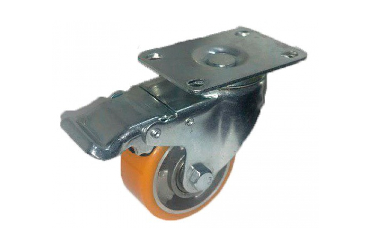 —Колесо большегрузное полиуретановое поворотное с тормозом Medium 100 мм MFK-TORG 4324100 AL