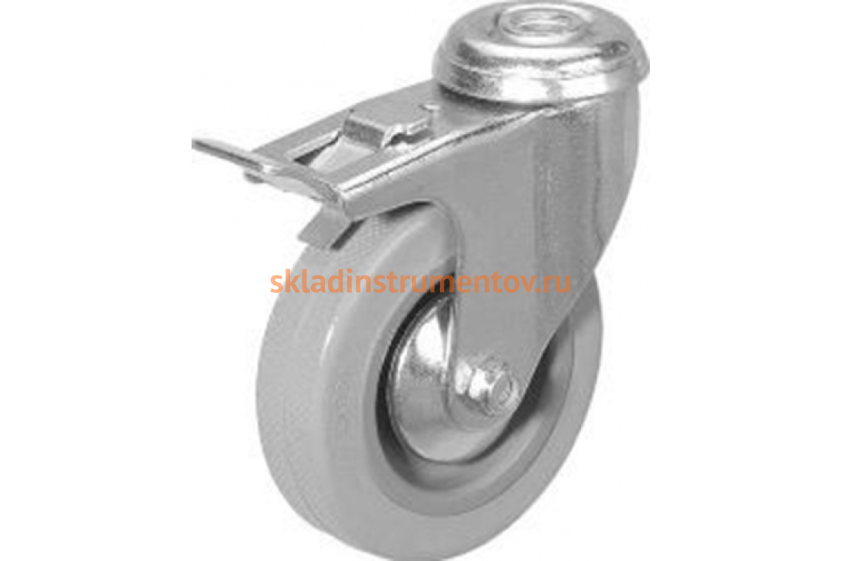 Колесо серая мягкая резина под болт с тормозом отверстие 10 мм SCHG93 75 мм MFK-TORG 5057075M