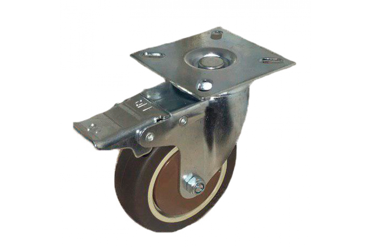 Колесо коричневая мягкая резина поворотное с тормозом SCGB93 75 мм MFK-TORG 7054075