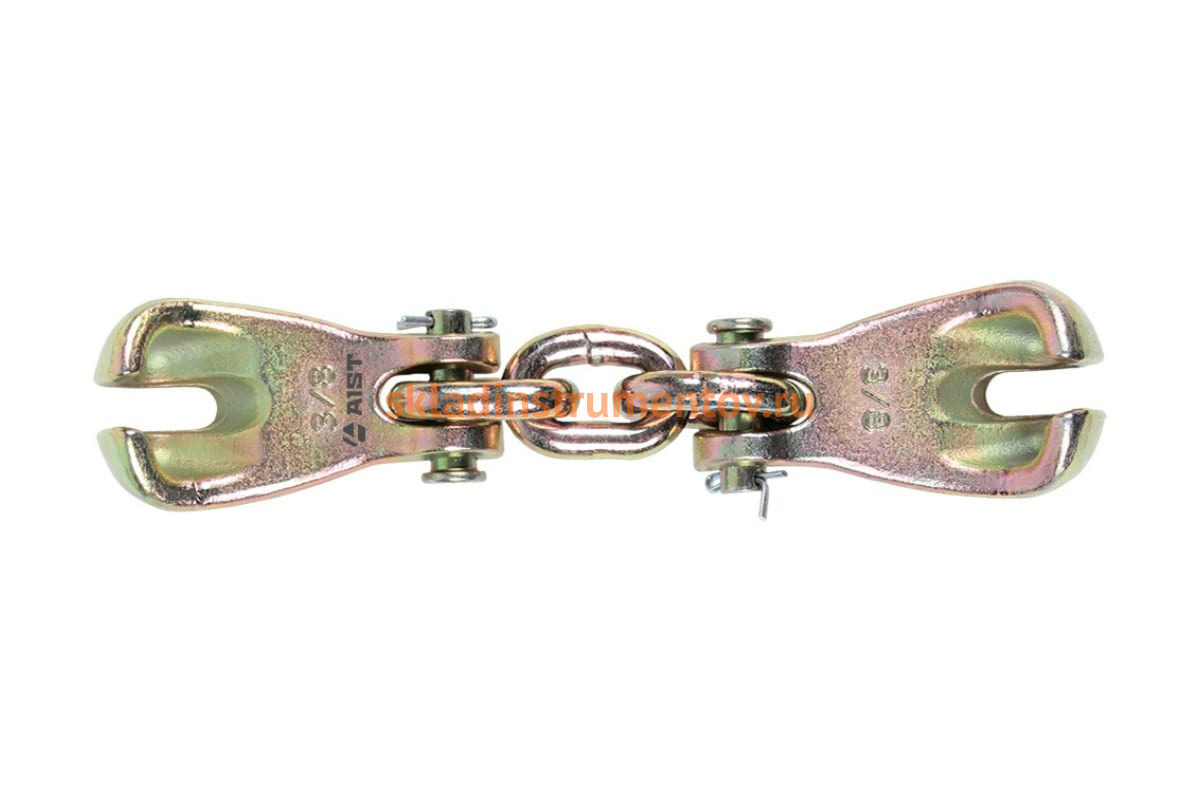 Укоротитель/соединитель цепей 5 тонн AIST 67916225 00-00008000 - специализированное приспособление, которое применяется либо для соединения двух цепей, либо для укорачивания одной цепи. Подходит для цепей диаметром 5/16" и 3/8". Максимальная нагрузка на крюки составляет 5 тонн.
