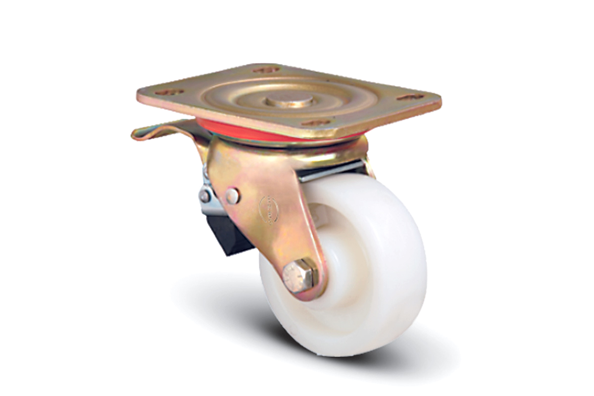 Колесо нейлоновое поворотное усиленный кронштейн с тормозом 200 мм ED01-ZKZ-200-F