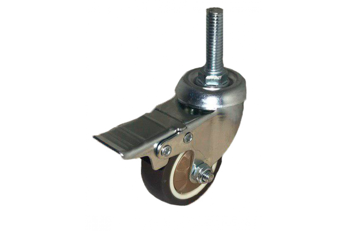 Колесо коричневая мягкая резина крепление болтом М10 с тормозом SCTGB25-10 50 мм MFK-TORG 7064050