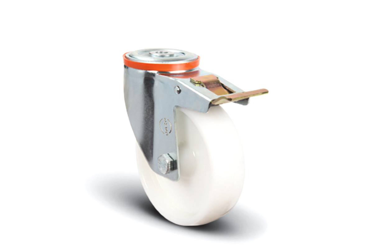 Колесо нейлоновое поворотное под болт М12 с тормозом 100 мм MFK-TORG EM04-ZKZ-100-F