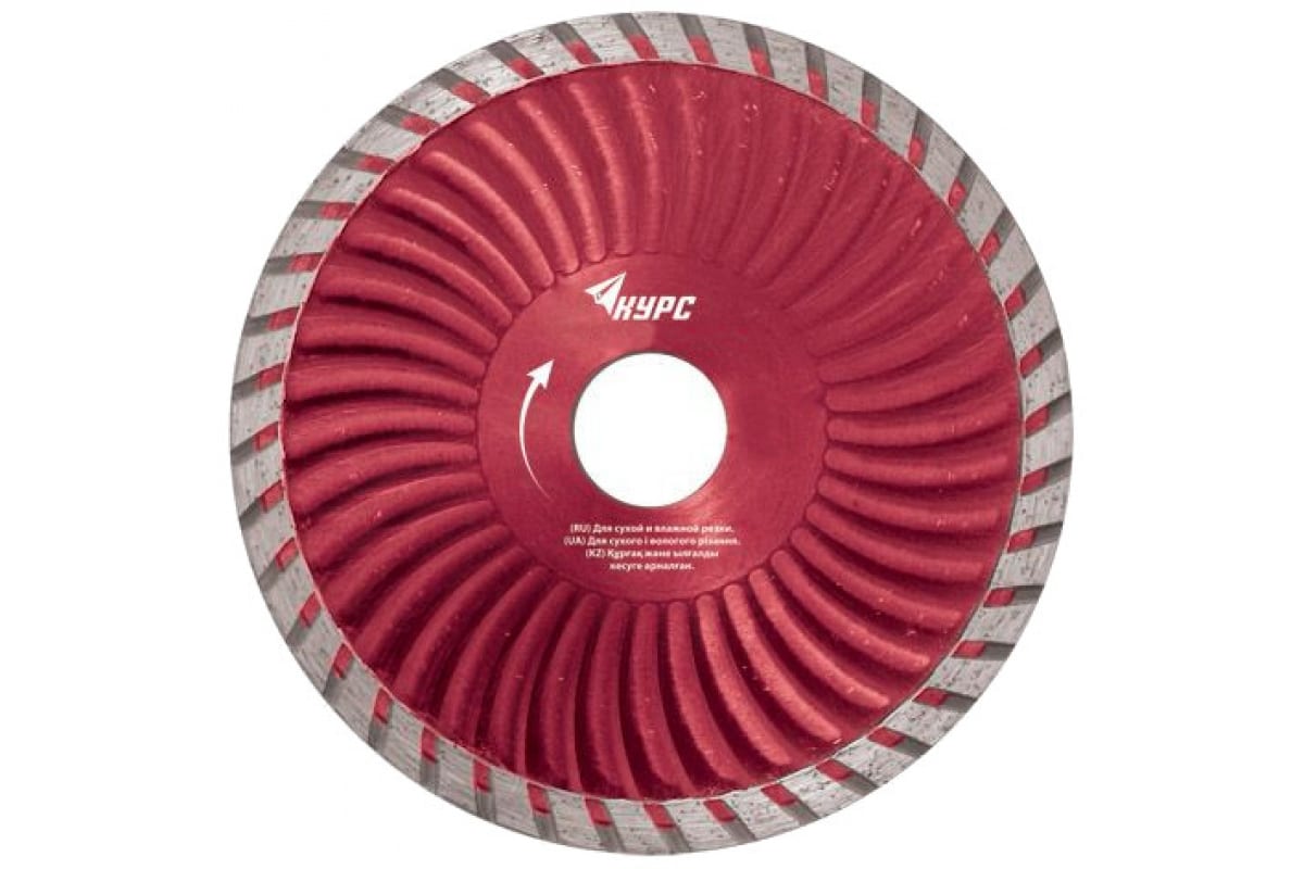 Диск алмазный отрезной турбо волна КУРС 37275 предназначен для резки бетона, камня, кирпича и кафеля с помощью угловой шлифовальной машины. Изготовлен из высококачественной инструментальной стали. Режущая кромка содержит технические алмазы.