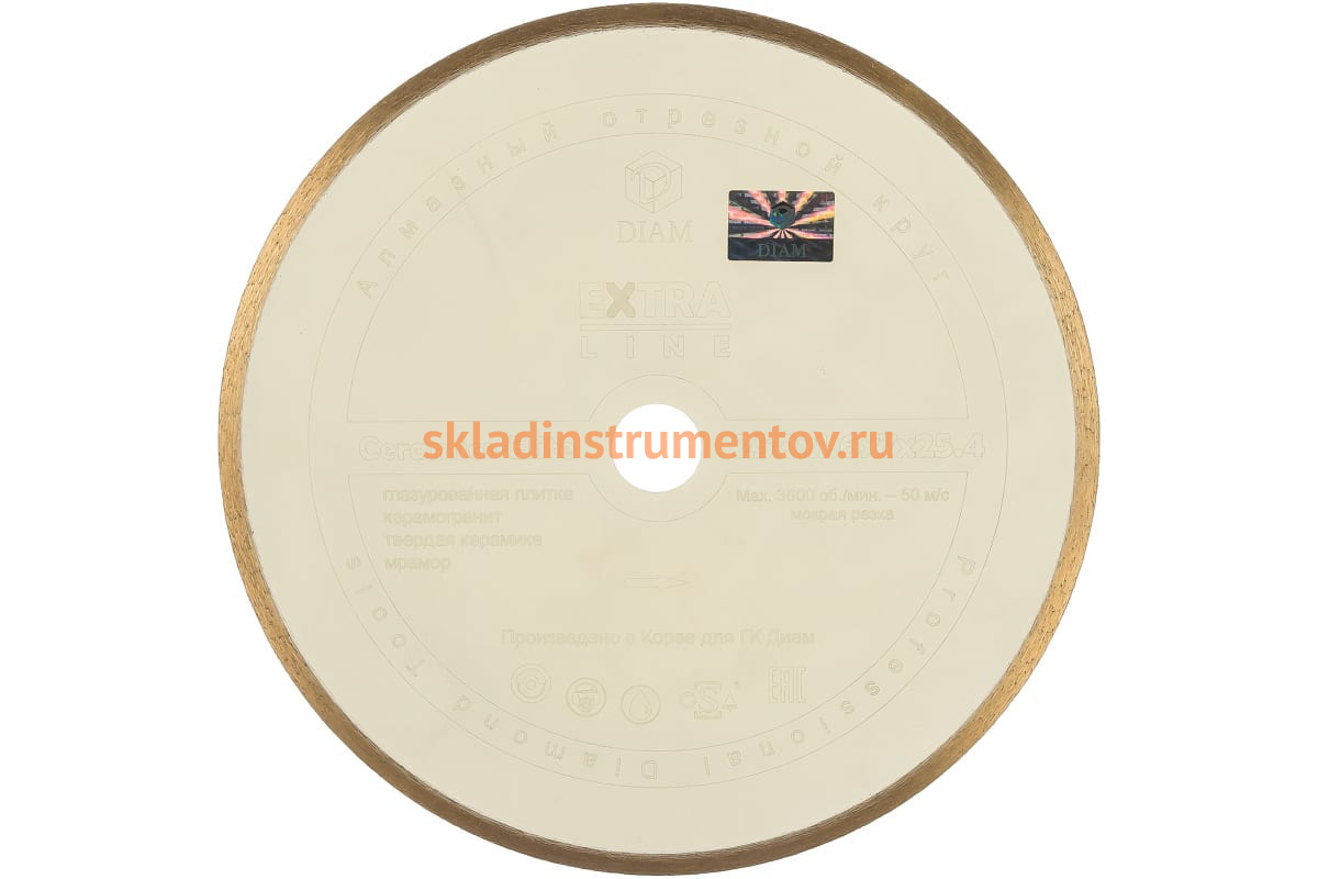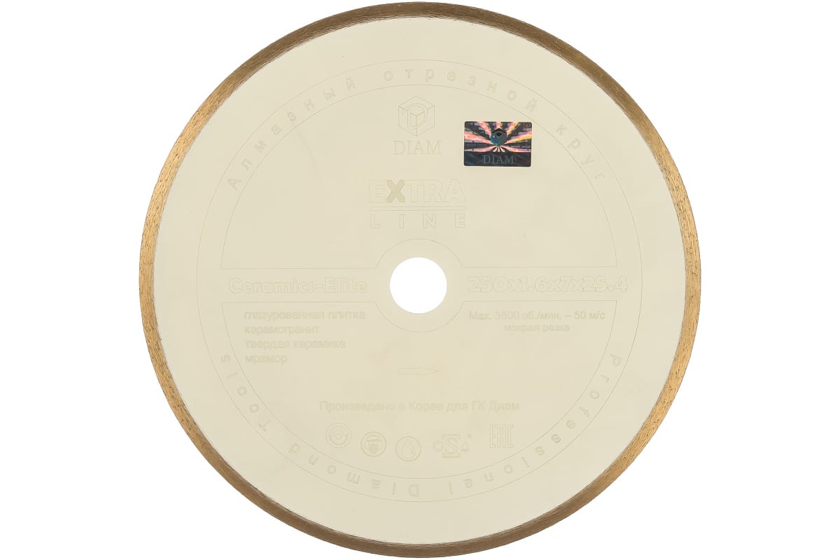 Круг алмазный отрезной 1A1R CERAMICS-ELITE Diam 000595 предназначен для плиткорезных станков. Применяется для резки глазурованной плитки, изделий из керамогранита, твердой керамики и мрамора. Благодаря конструкции диска рез получается без сколов. Диск имеет высокий ресурс и производительность. Обязательно охлаждение водой. Высота алмазного слоя - 7 мм.